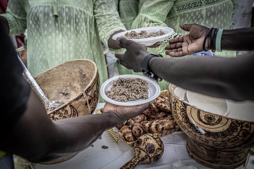 Desde temprano en la mañana hasta bien entrada la noche, la comunidad Mouride organiza una jornada llena de espiritualidad, generosidad y unión. En este espacio abierto a todos, sin importar religión, género o edad, se ofrece desayuno, comida y cena, recordando que la hospitalidad es un pilar de su fe.